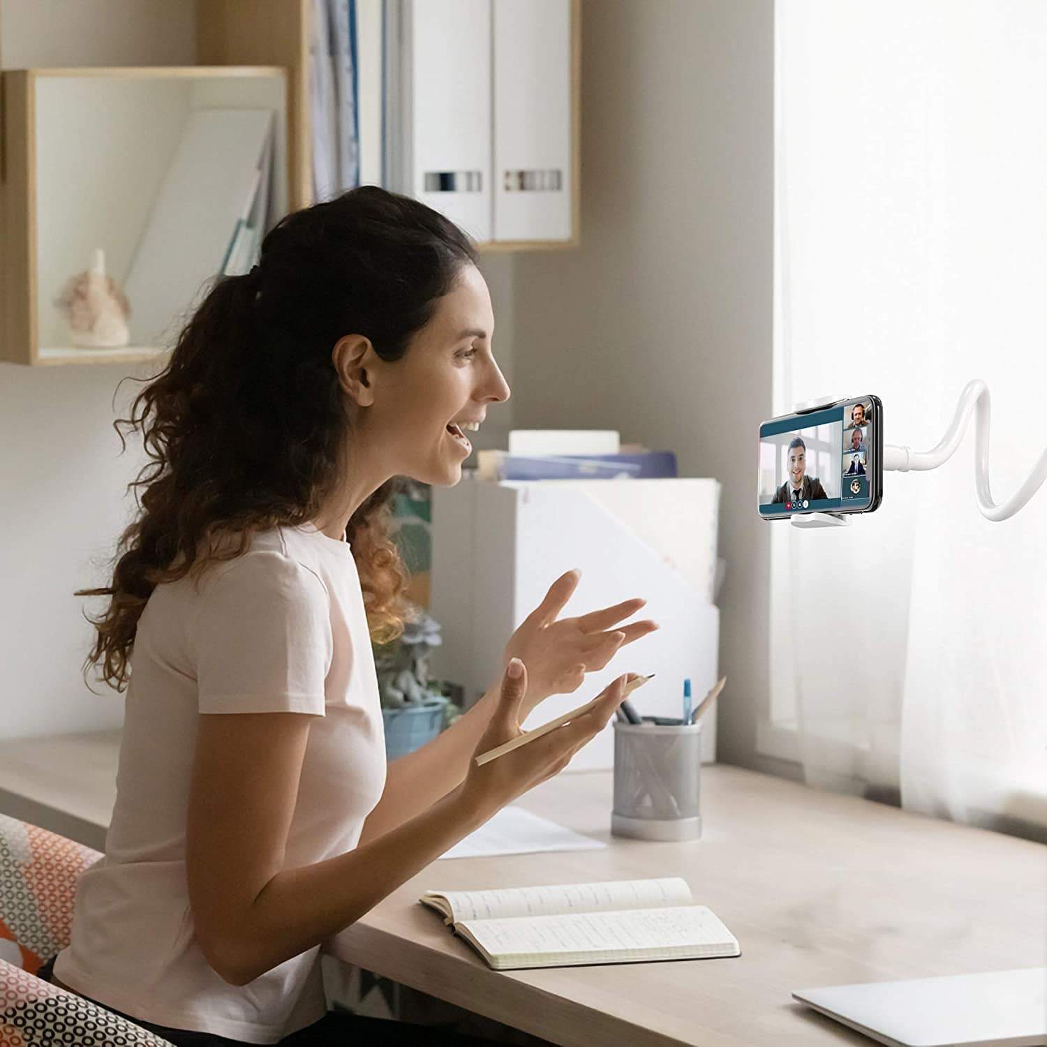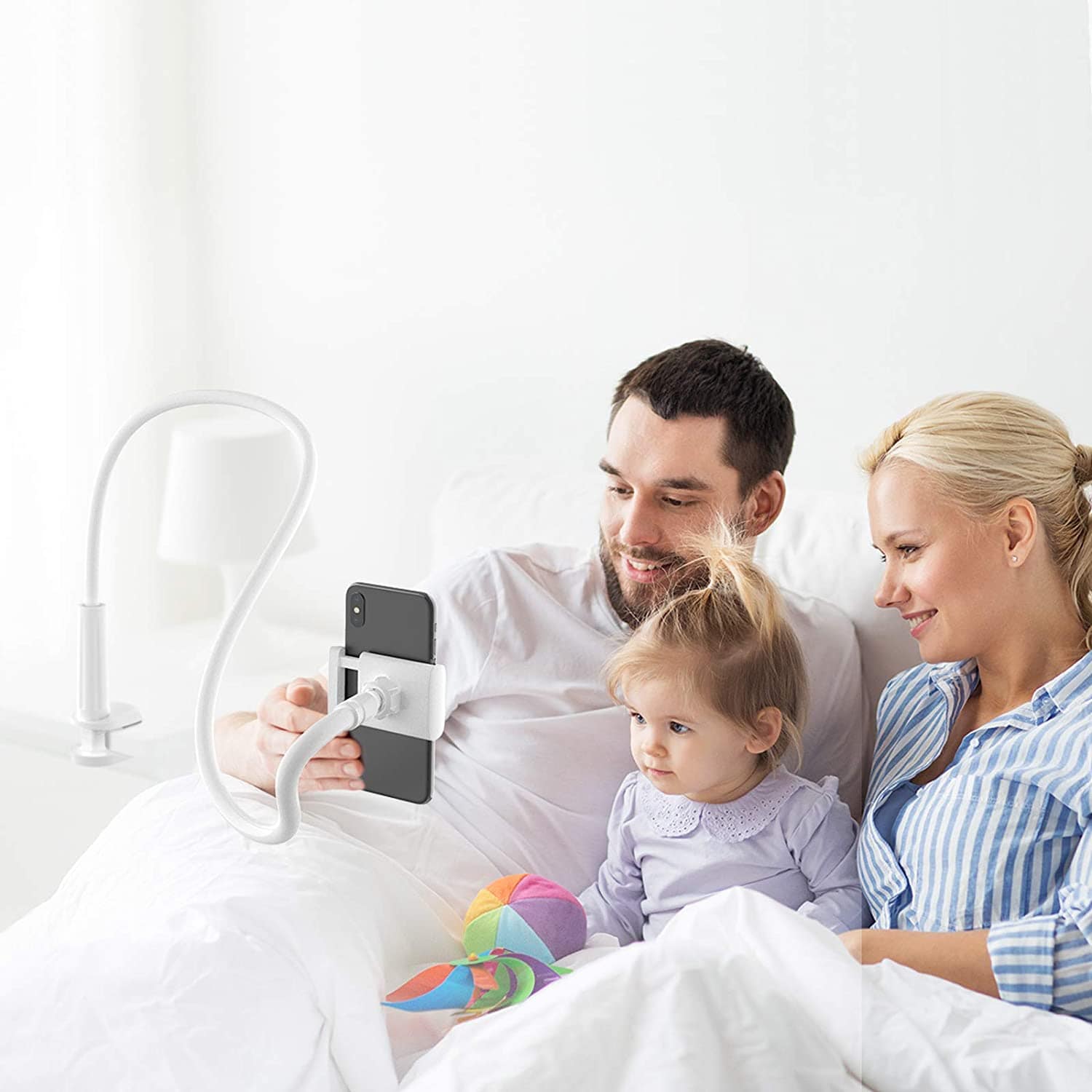 Flexily™ Pro, smartphone holder with a strong & flexible arm to free up your hands from holding the device. Suitable for video calling, clicking pictures, follow recipes, binge-watching, recording videos, and much more. A flexible 30'' arm and 360° rotating ball joint make it easier to set the screen at a comfortable viewing angle.