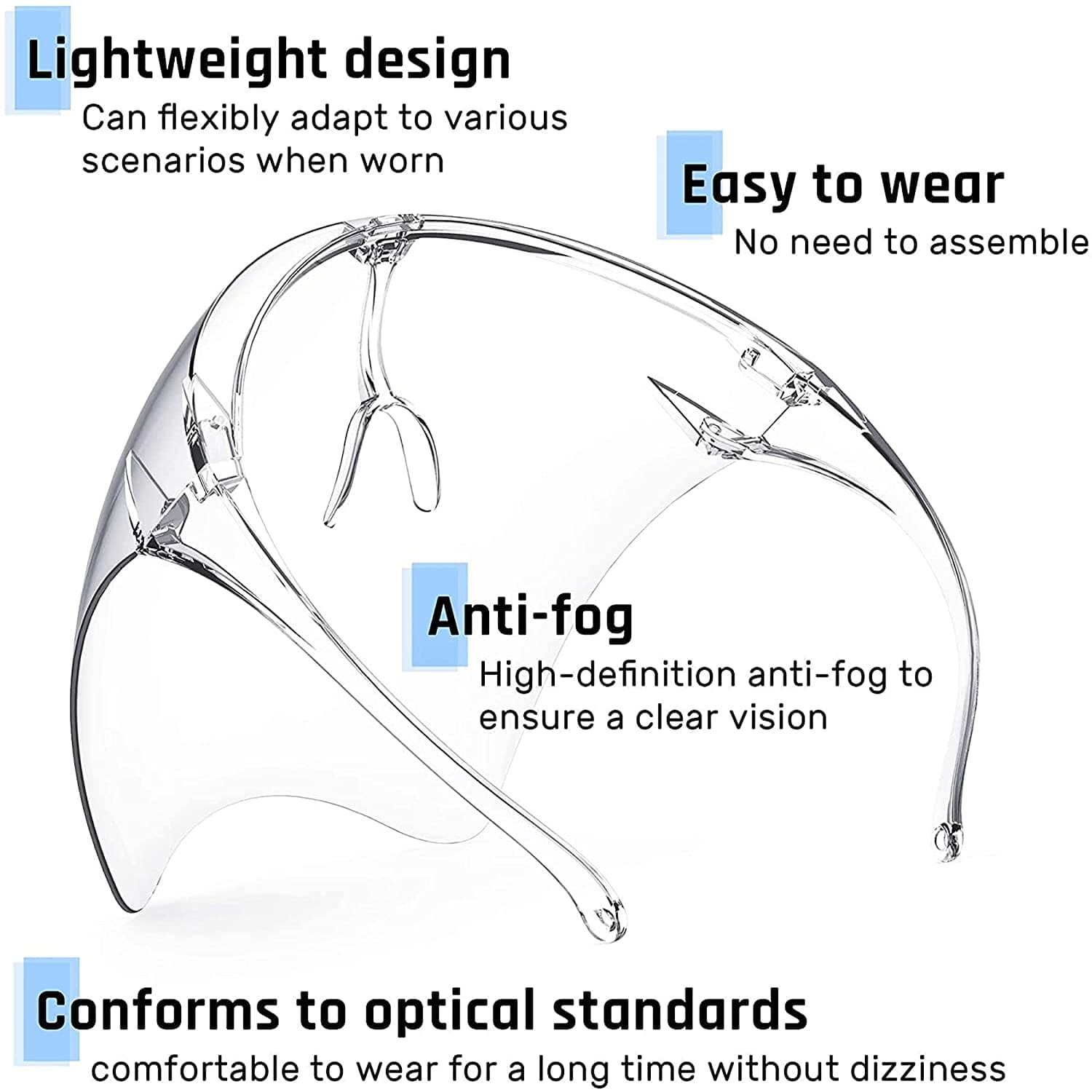Innovative: Designed for ultimate comfort and convenience, this face shield with glasses ensures safety against all foreign particles. It also allows proper respiration so you can wear it for long durations.