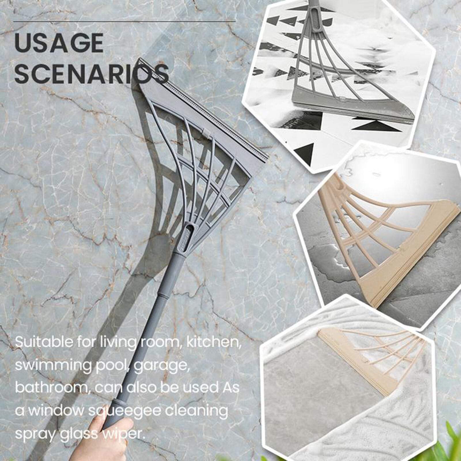 Kleanezy™, a sweeper broom famously known as the magic broom for its unique design and brilliant functionality. Kleanezy™ can scrape clean dirt, dust, hair, as well as wet trash, water, spills, and more. No need to scrub and sweep separately. Just a single swipe and the floor is clean and dry as new. Works on all kinds of surfaces like concrete, wood, tile, marble, etc.