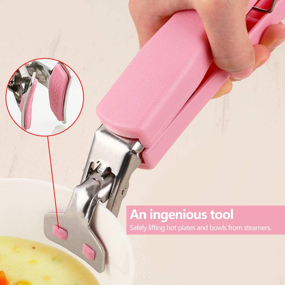 Pickeze™, bowl holder clamp for carrying hot pots, plates, glasses, bowls, mugs, dishes, and more.
