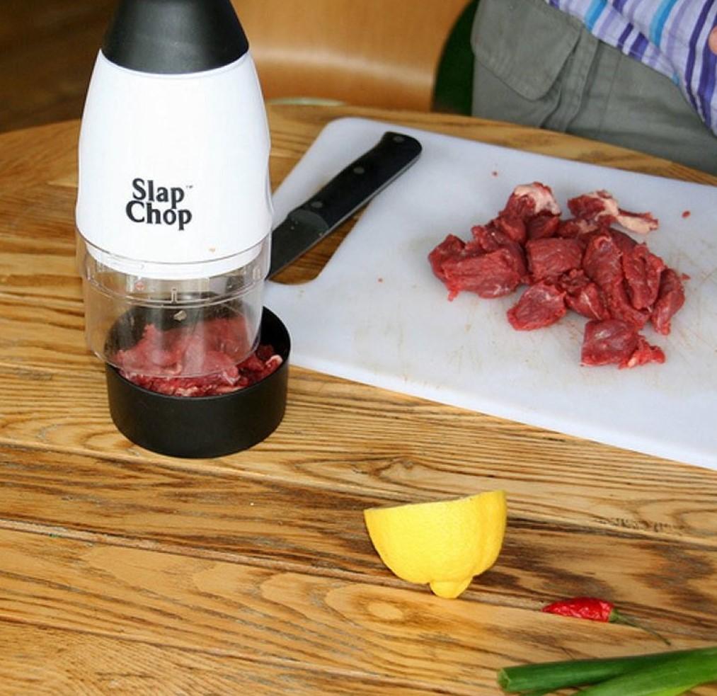 Simply place the food under the chopper and slap the top to cut up the vegetables or fruits in one swift movement.